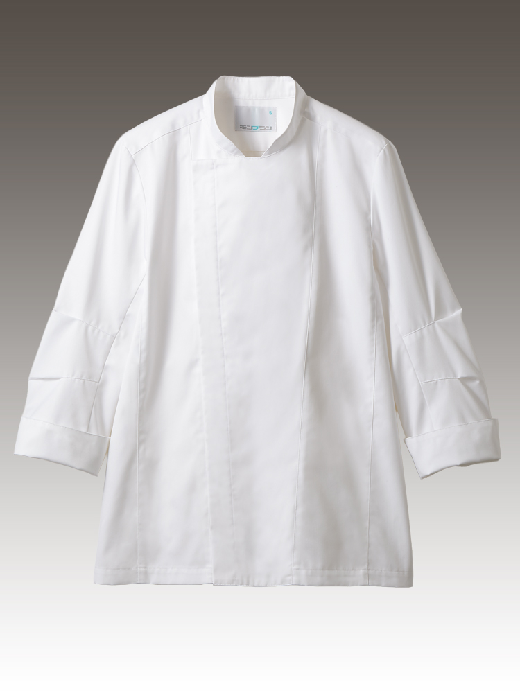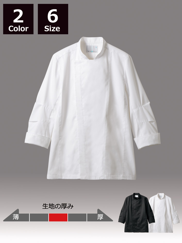 男女兼用 立ち襟タイプの長袖コックコート。