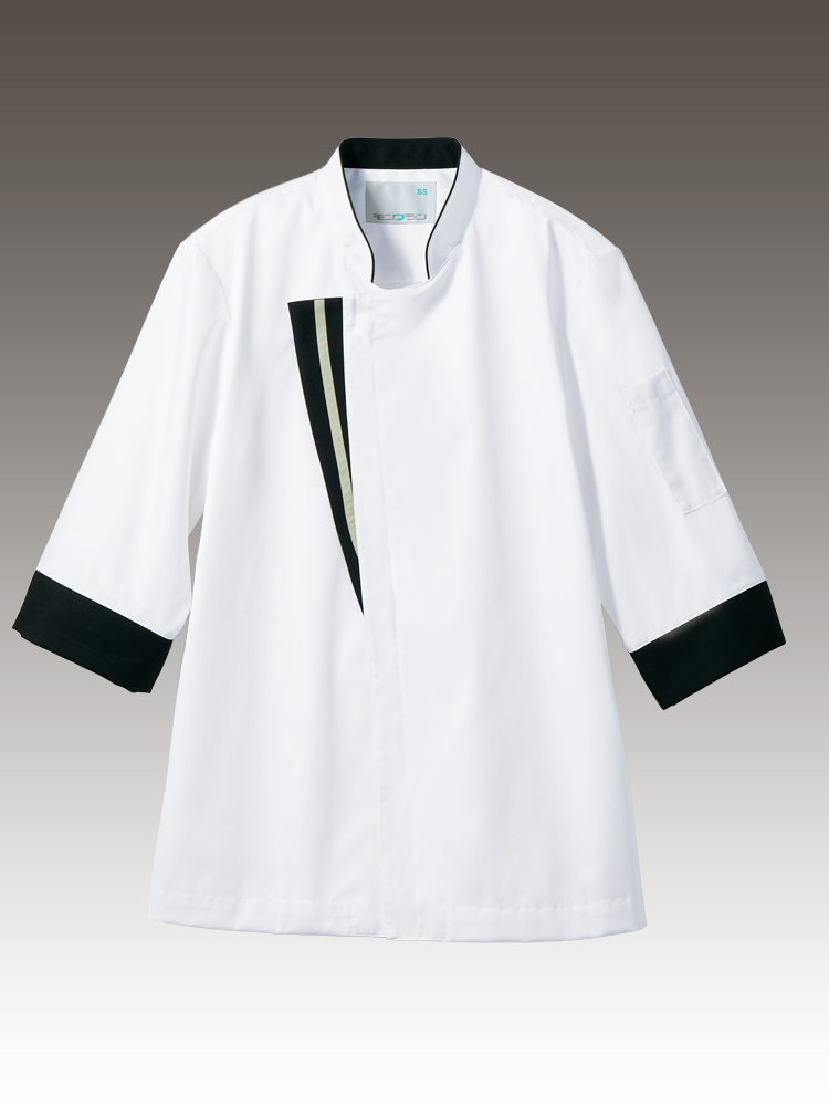 男女兼用 立ち襟タイプの長袖コックコート。