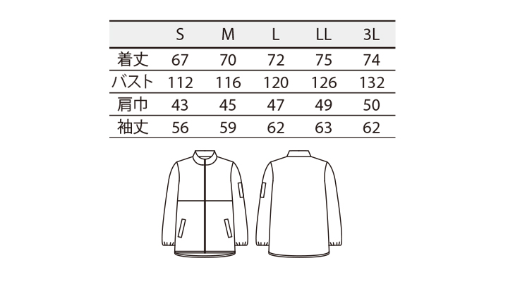 SJ-00182 ブルゾン(男女兼用・長袖) サイズ一覧