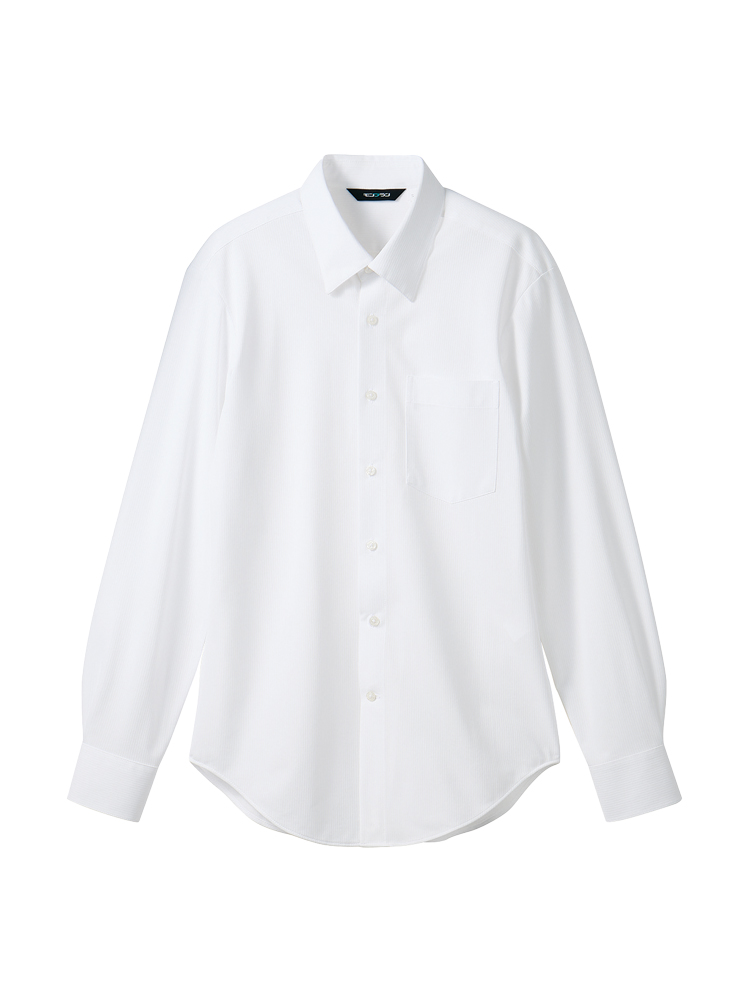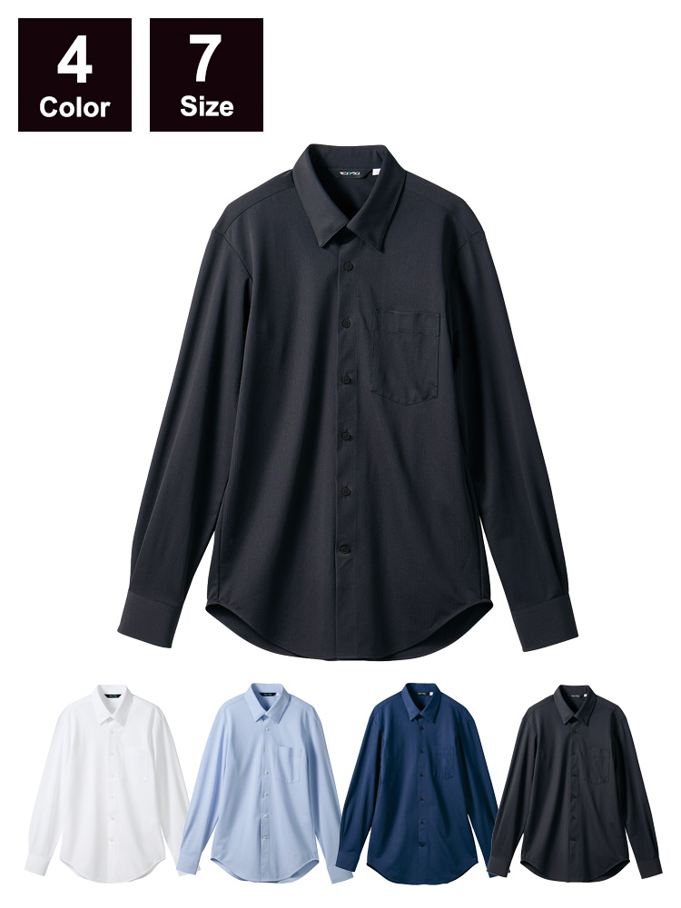 ニット素材でありながら、布帛ライクな見た目が魅力の長袖シャツ。