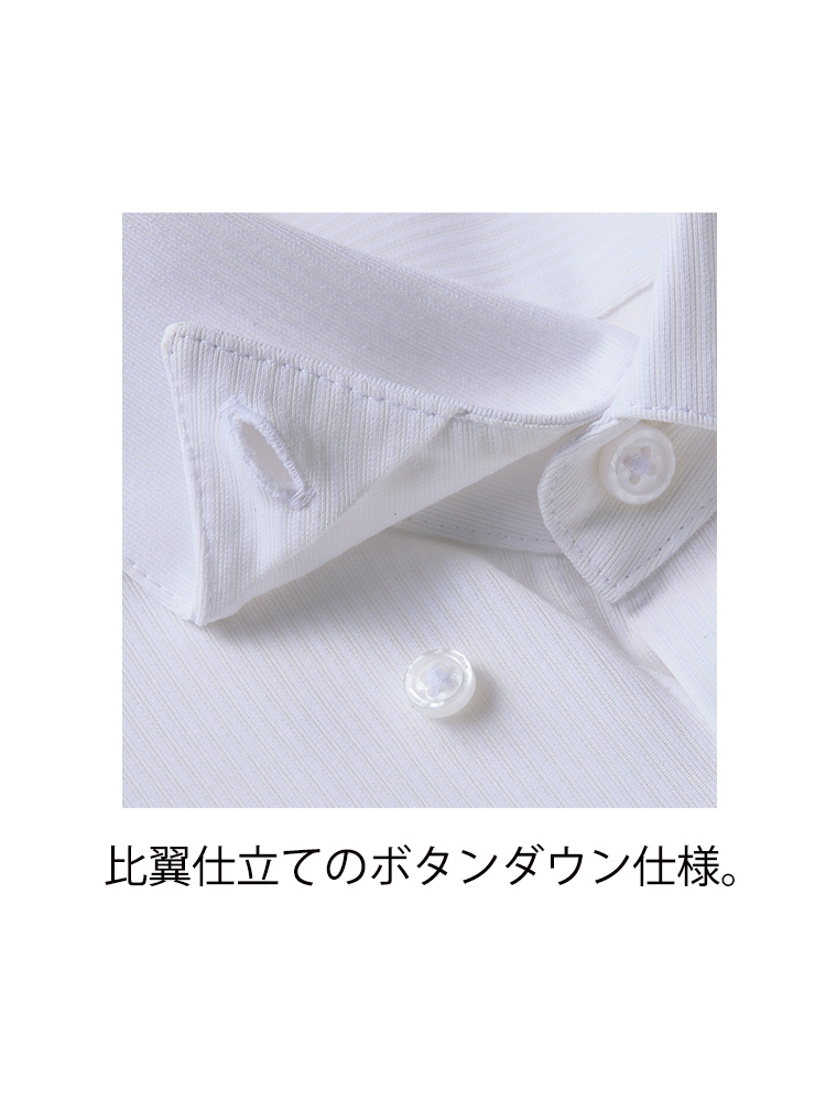 ボタンダウン仕様でありつつ比翼仕立て襟元もきれいにキープ。