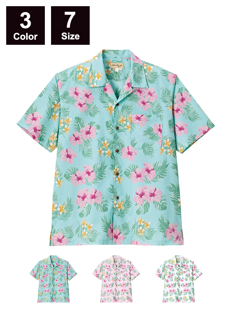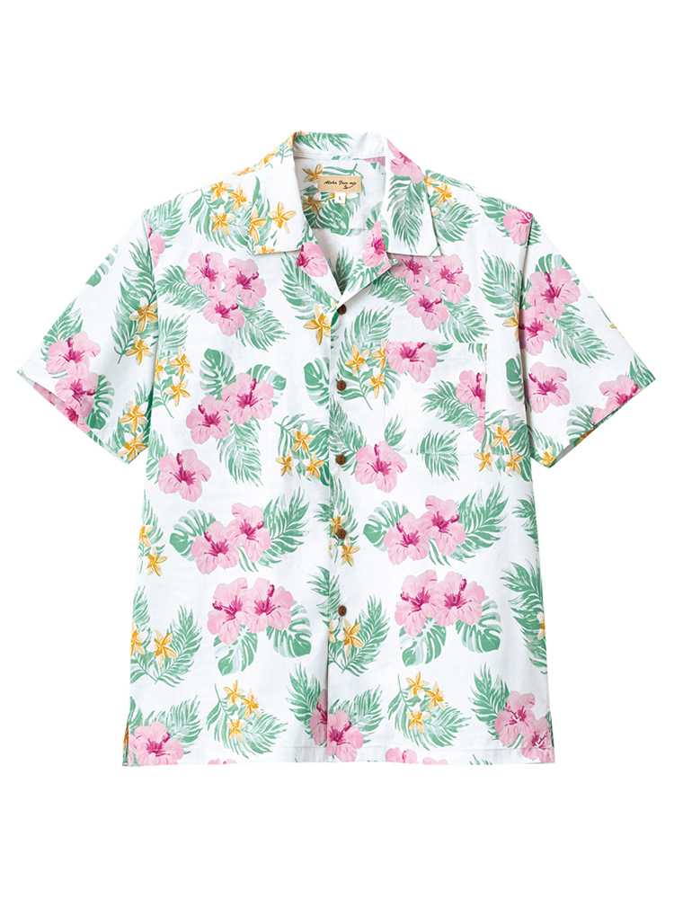 着るだけで気分が上がるアロハシャツ(ハイビスカス)。