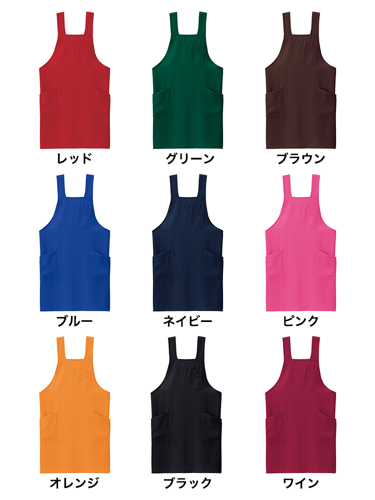 カラーバリエーションが豊富なH型胸当てエプロン。