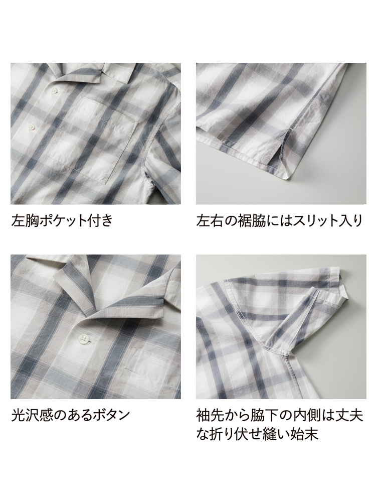 開いた襟が特徴のコットンオープンカラー シャツ。