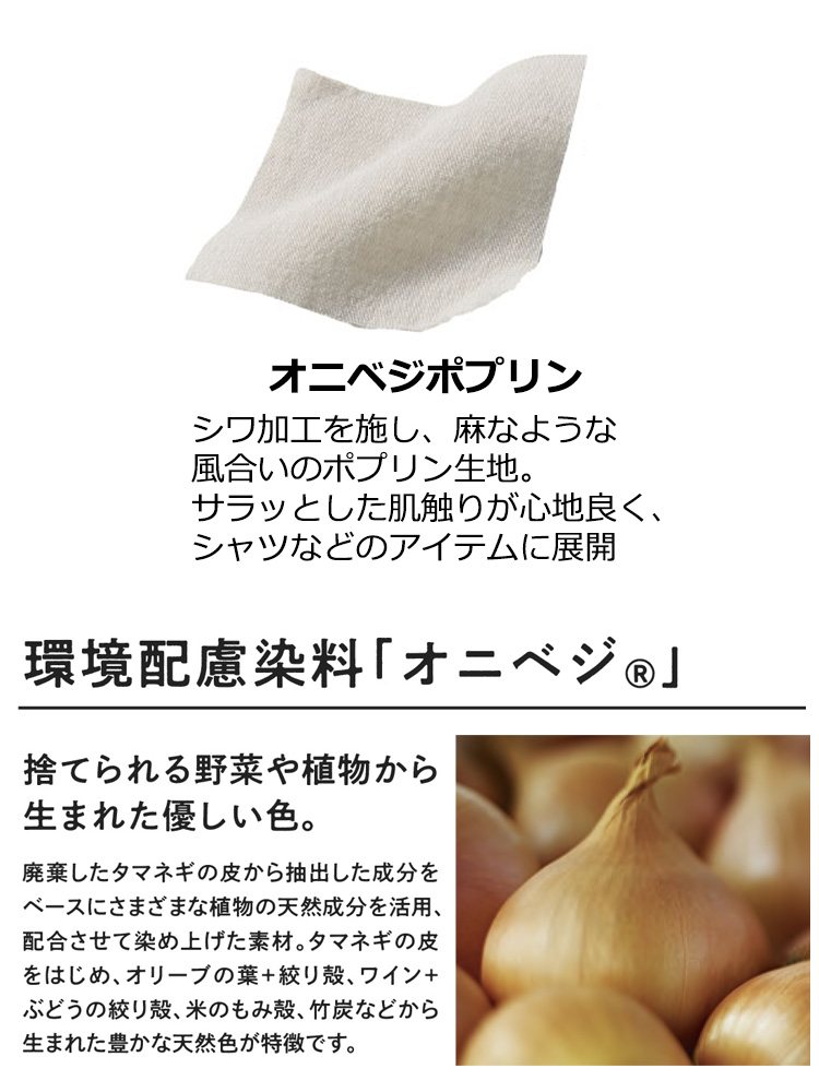 シワ加工を施しており、麻のような気持ちの良い風合いのシャツです。