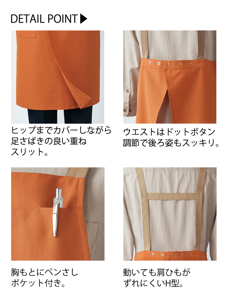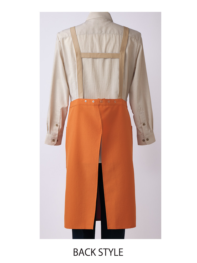 細やかなシワ感のあるビンテージ加工を施したウェザー素材のH型の胸当てエプロン。