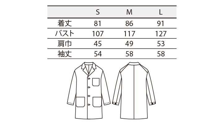 CK-OV7001 ショップコート サイズ表