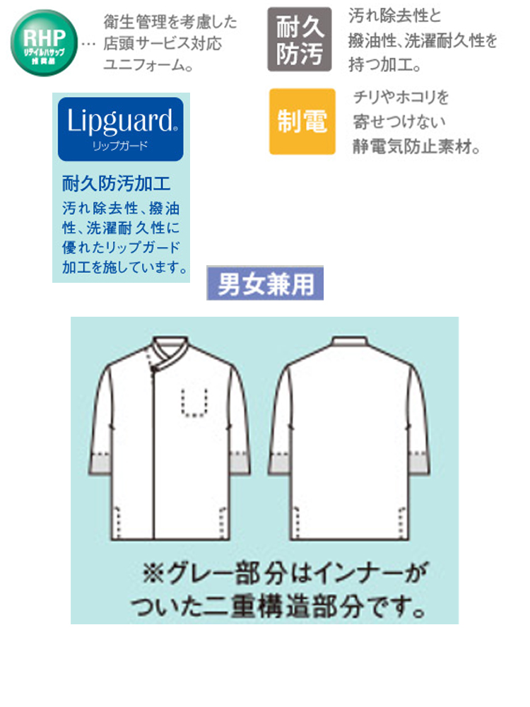 着物風の和モダンな7分袖の調理コート。