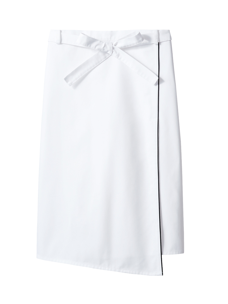 パイピングがアクセントになったシンプルデザインのお洒落エプロンです。