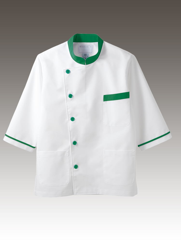 CK6813 コックコート(男女兼用・七分袖) 拡大図 白/グリーン