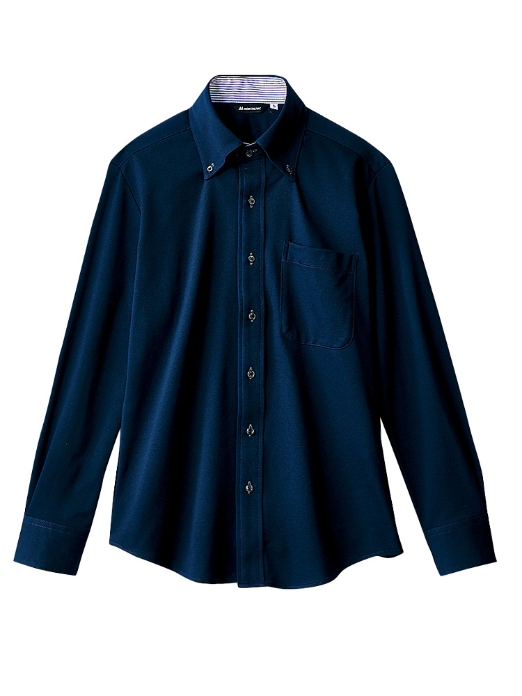 襟の裏地と袖口のストライプや、ボタン糸やホールに配したアクセントカラーなど、さりげなくこだわったデザインにも注目です。