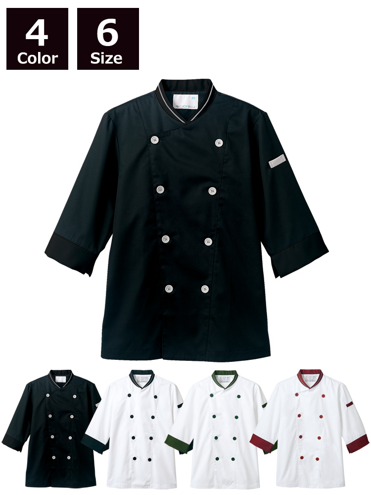 > コックコート > お洒落コックコート > CK-6430 ~ CK-6438: コックコート(7分袖・袖口ネット)