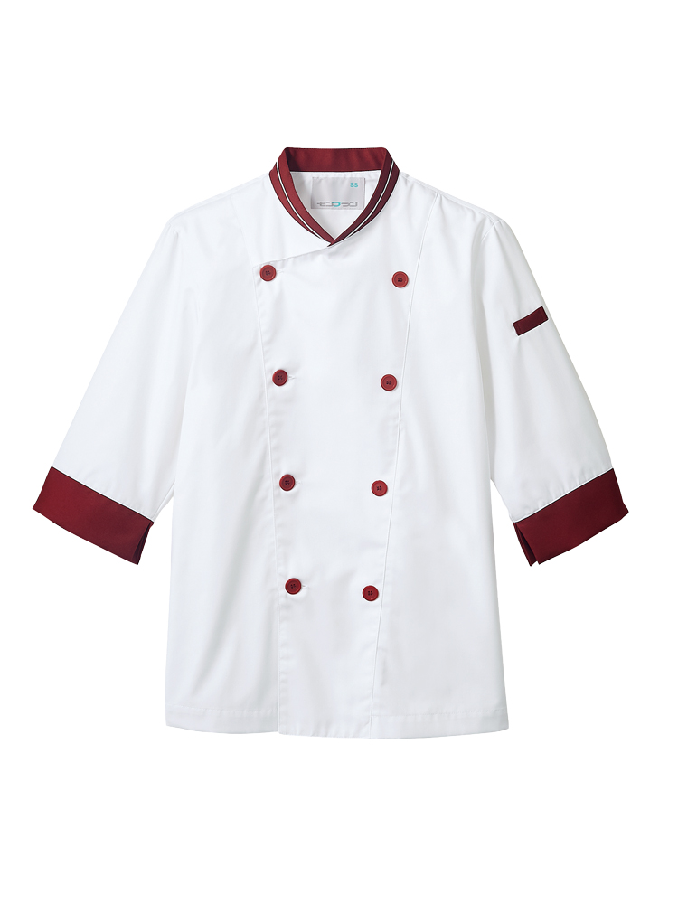 CK-6430 コックコート(7分袖・袖口ネット) 拡大画像 白/ワイン