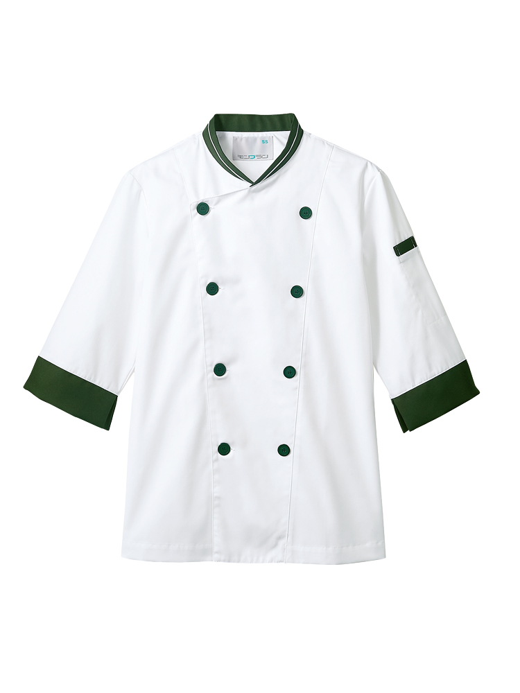 • CK-6430 コックコート(7分袖・袖口ネット) 拡大画像 白/ボトルグリーン