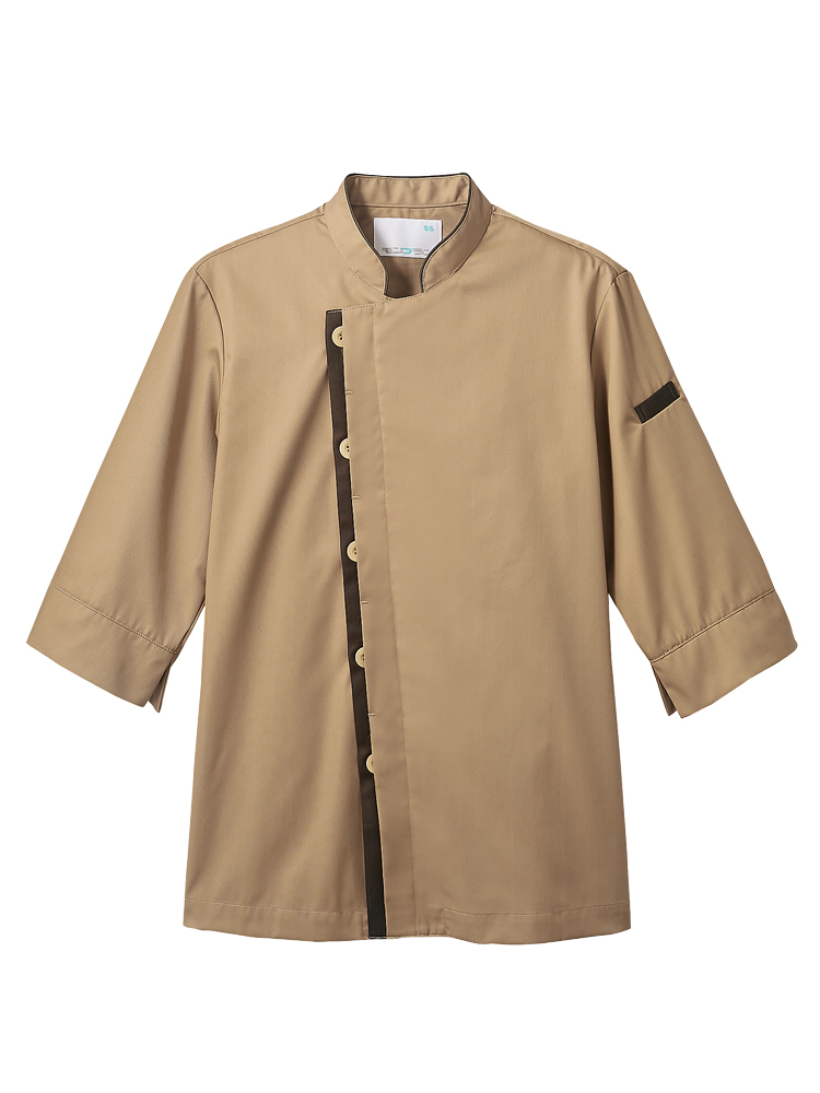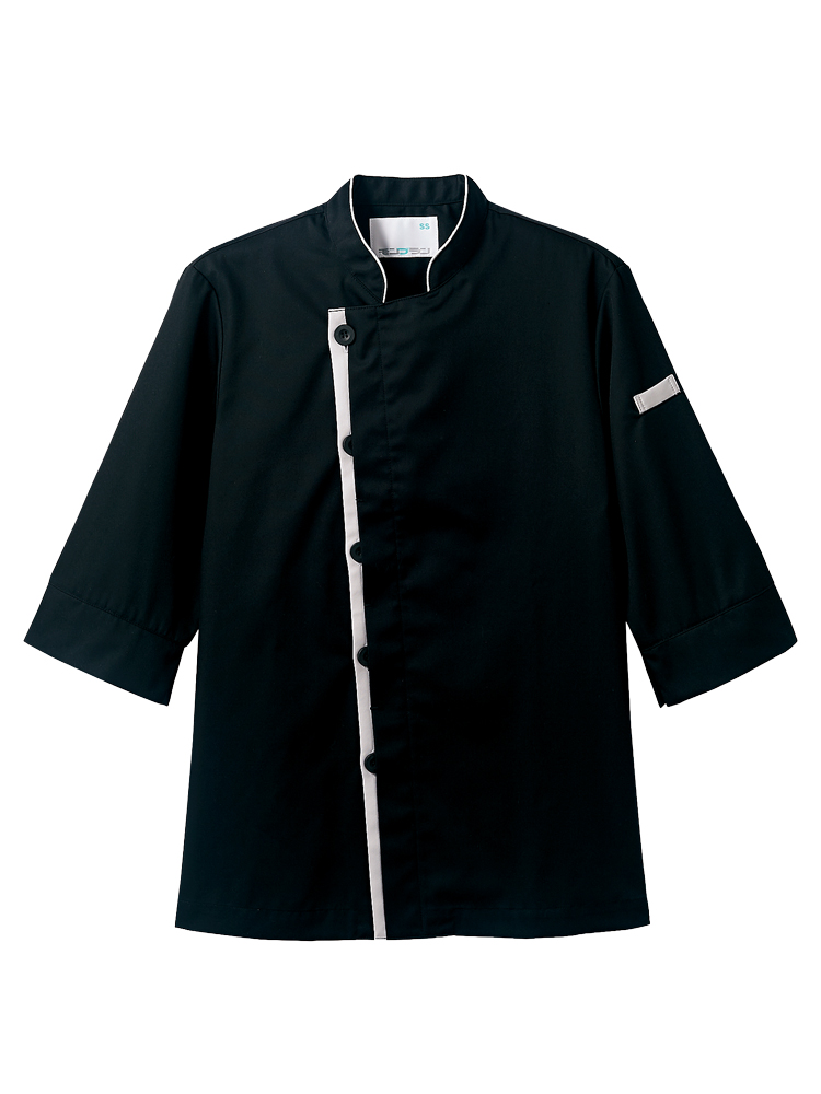 主張しすぎないさりげない凝ったデザインがお洒落な七分袖コックコートです。